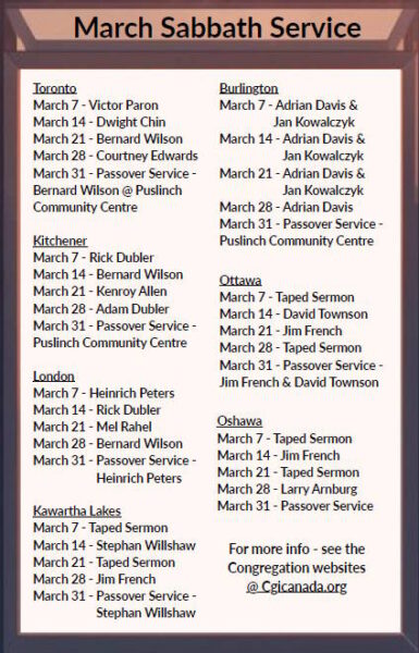 Weekly Sabbath Services